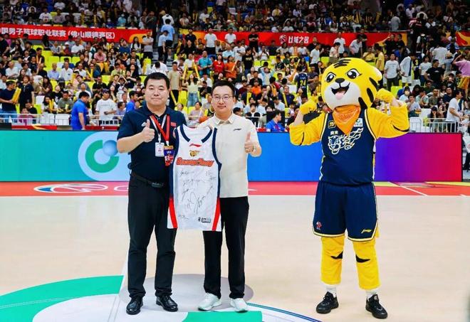 至此,广东东阳光在本赛季常规赛第二主场佛山顺德赛区的赛事圆满结束。在此,由衷感谢现场球迷响彻球馆的助威呐喊带给球队的巨大能量!感谢顺德各相关部门的鼎力支持,以及承办单位的精心组织与全程保障、现场所有工作人员和志愿者的辛勤付出!中场休息时段,俱乐部常务副总经理袁俊向佛山顺德华体德胜体育中心有限公司常务副总经理王智秋赠送全队签名球衣,致以诚挚谢意!未来,让我们继续向前,不负每一份支持与期待。